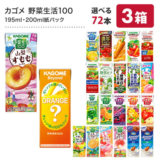 〔最大500円OFFクーポン配布中!〕 カゴメ 野菜ジュース 野菜生活 他 195ml 200ml 紙パック 選べる 72本 (24本×3 まとめ買い) 季節限定 よりどり 山梨すもも ネーブルオレンジ はっさく 機能性表示食品