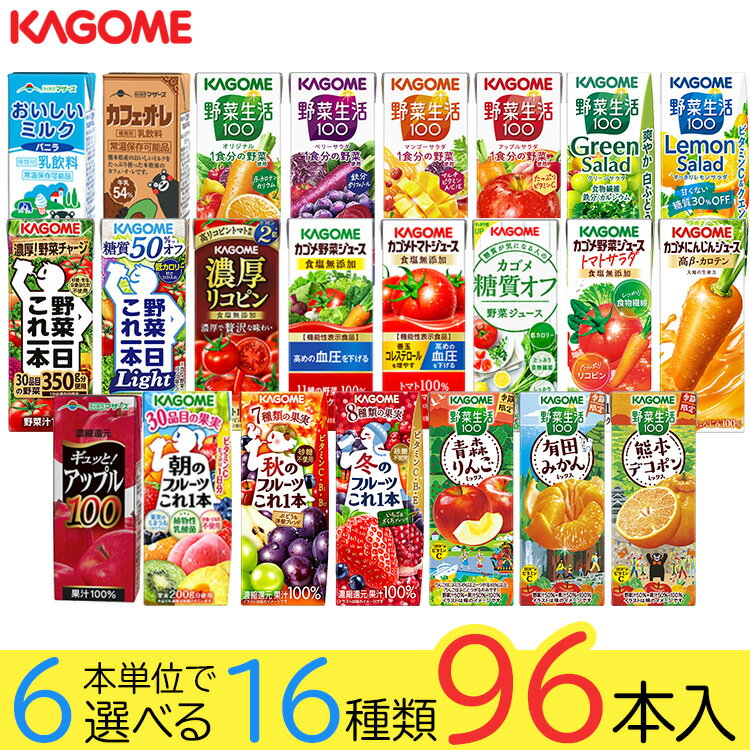 ポイント5倍 選べる カゴメ 野菜 果実飲料 よりどりMIX 195~200ml 紙パック 96本 (24本×4箱)【よりどり4ケース】【送料無料(一部地域除く)】 野菜ジュース