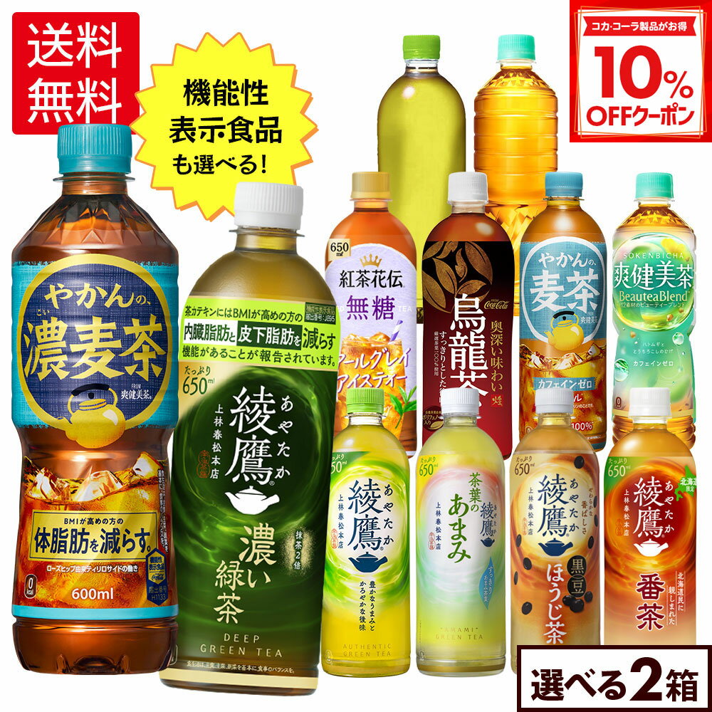 【10%OFFクーポン対象 12/11 23:59まで】コカ・コーラ 選べる よりどり 綾鷹 爽健美茶 やかんの麦茶 ラベルレス 500ml 600ml 650ml ペットボトル 24本入り×2ケース【送料無料】
