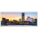 絵画風 壁紙ポスター -窓の景色- 夕暮れのみなとみらい 夕焼けの富士山 横浜 MM21 パノラマ【扉なし窓仕様】 YKH-101NP1 (パノラマ版 1440mm×576mm)