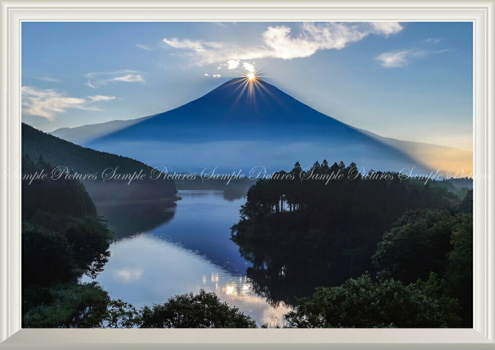 絵画風 壁紙ポスター (はがせるシール式) -窓の景色- ダイヤモンド富士 富士山 山頂の朝陽 太陽 田貫湖の森林 開運 パワースポット【扉なし窓仕様】 キャラクロ FJS-025NA1 (A1版 830mm×585mm) <日本製> ウォールステッカー お風呂ポスター