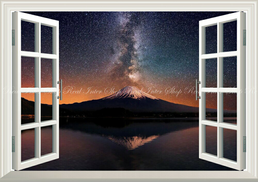 絵画風 壁紙ポスター (はがせるシール式) -窓の景色- 夜の逆さ富士と天の川銀河 富士山 星空 天体 瞑想 神秘的 開運 パワースポット【窓仕様/トリックアート】 キャラクロ FJS-044MA1 (A1版 830mm×585mm) <日本製> ウォールステッカー お風呂ポスター