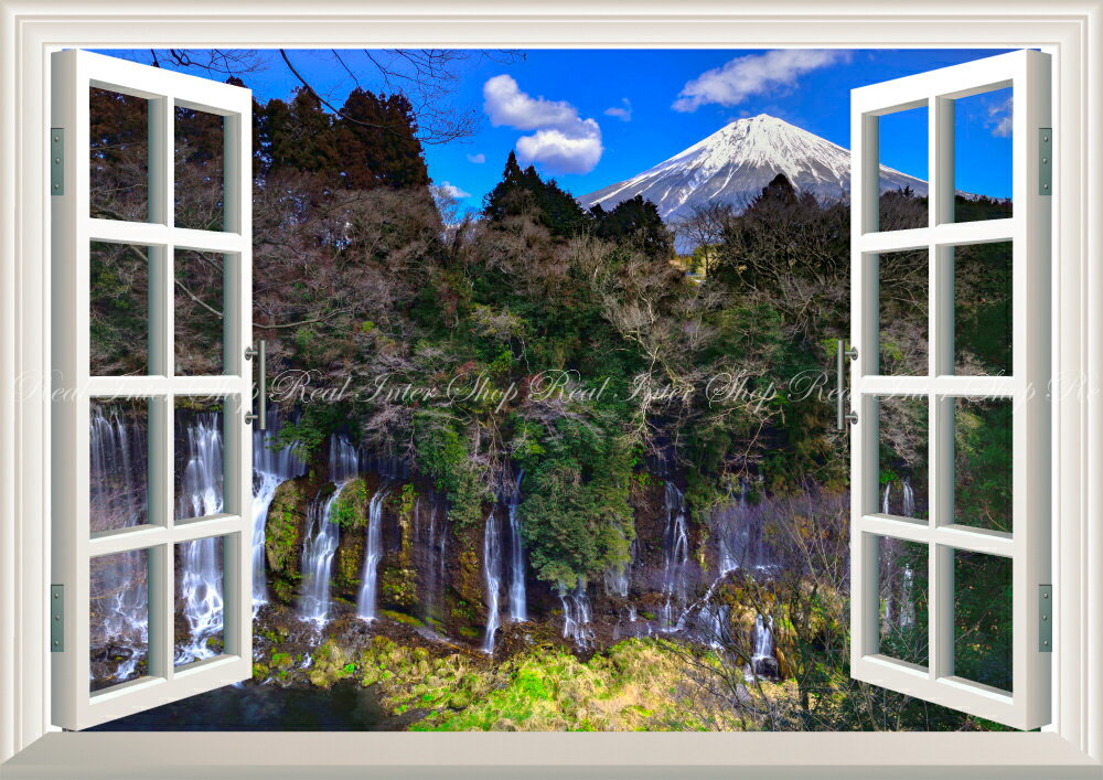 絵画風 壁紙ポスター (はがせるシール式) -窓の景色- -地球の撮り方- 流れ落ちる絹糸、富士宮の白糸の滝と富士山の絶景 【窓仕様/トリックアート】 キャラクロ C-ZJP-063MA1 (A1版 830mm×585mm) <日本製> ウォールステッカー お風呂ポスター