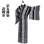 訪問着 袷 正絹 黒 白 松 青海波 あられ模様 草柄 縦縞 Mサイズ ki27438 中古美品 20代 30代 40代 50代 送料無料