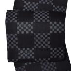 (中古品)仕立て上がり 袋帯 「黒地に青紫のあられ市松」 洒落帯 (メール便不可)