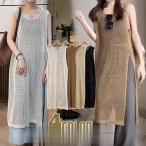 ワンピース レディース マキシワンピース スリット ノースリーブ マキシワンピ 重ね着 夏 無地 チュニック 体型カバー マキシ ゆったり