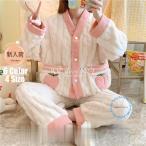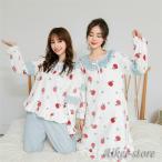 パジャマ ルームウェア レディース フランネル フラノ いちご柄 カーディガン 裏起毛 秋冬 パジャマ ロングズボン 長袖 ルームウェア 女性用 部屋着 寝巻き 厚手