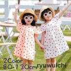 ワンピース 半袖 子供服 女の子 キッズ 春服 夏服 スクエアネック 膝丈 Aライン いちご柄 フリル かわいい おしゃれ お出かけ ガールズ 女児