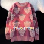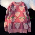 ニットセーター プルオーバー いちご ふわもこ 長袖 ニット セーター 丸首 レディース トップス