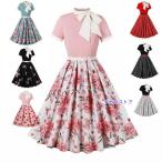 スイングワンピ レトロワンピース レディース 大きい裾 春夏 ワンピ ハイネック 結婚式 Aライン 半袖 着痩せ 学園祭 文化祭 お呼ばれ 謝恩会 披露宴 オールシー