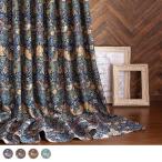 カーテン ジャガード いちご泥棒 ウィリアムモリス 日本製 川島織物セルコン 高級感 防炎 洗濯可 2枚セット 1枚 豪華2倍ヒダ(3つ山)
