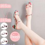 いちご柄 ヒール サンダル レディース 2Ways かわいい オシャレ 脚長 小さいサイズ ヒール6cm レジャー用 リゾート タウン用サンダル