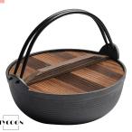 囲炉裏鍋 キャンプ 鍋 炭火 ガス火 鉄鍋 いろり鍋 天然木蓋付き 1人鍋 懐石料理 卓上鍋 すき焼き鍋 ツル付き 木製ふた付き 料亭 旅館 飲食店