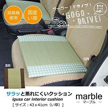 【エントリーでP5倍!20日20:00-27日1:59】 1230190120502 車用クッション カークッション クッション い草クッション 抗菌防臭 消臭 『マーブル半Pマチ付シート』 グリーン 約43×41cm イケヒコ・コーポレーション メーカー直送