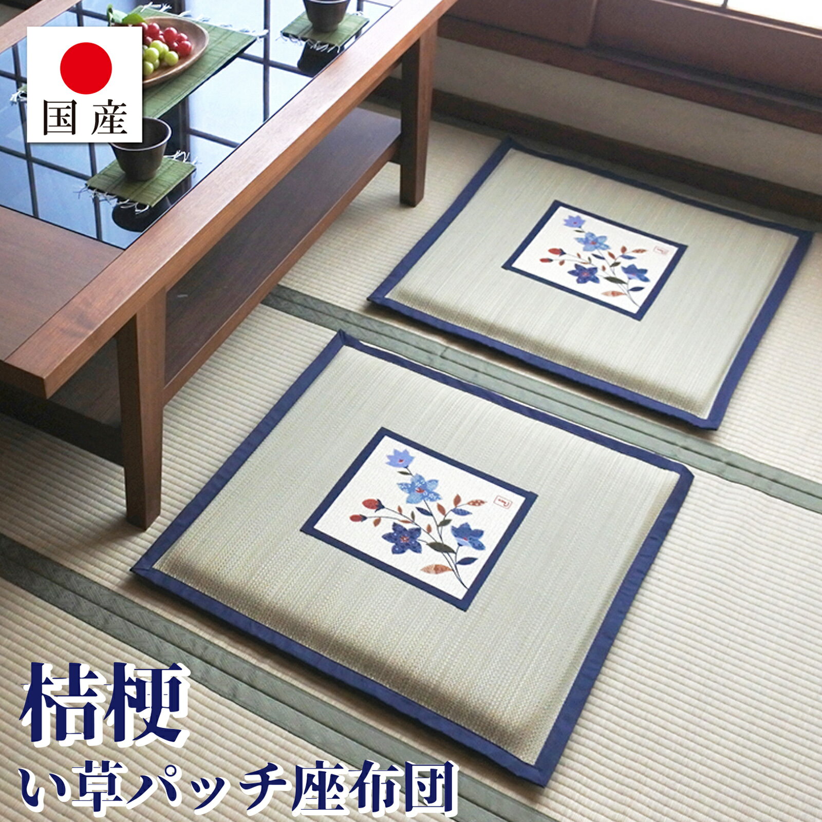 【国産】パッチ座布団 桔梗 約55×55cm日本製 い草 天然素材 抗菌 消臭 調湿 涼感 冷感 フローリング 和室 い草クッション 和柄 癒し