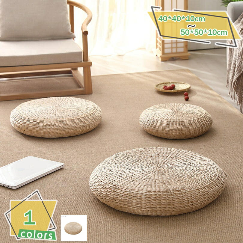 丸型ざぶとん い草座布団 い草製の円形座布団 い草クッション シーグラス ザブトン 丸 天然素材 手作り 超通気性 素朴 和風 和室 ウィンドウクッション 筵パッド 瞑想用クッション フロアクッション RaogtCYU