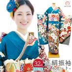 仕立て付き 正絹 振袖 フルセット32点 f-006 青緑 エメラルドグリーン ブルーグリーン 新品購入 成人式