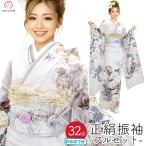 【セール】仕立付き 正絹振袖 フルセット32点 白色 くすみ色 絹100% f-422 成人式 振袖一式 新品購入