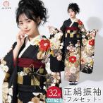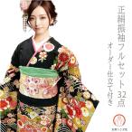 【決算セール】仕立て付き 正絹 振袖 フルセット32点 f-017 黒 ブラック 成人式 卒業式 結婚式 金駒刺繍 一式 セット
