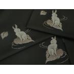 平和屋着物■極上 本場筑前博多織 両面 半幅帯 兎 うさぎ 黒地 博多金ラベル 協和織謹製 証紙付き 逸品 DZAA7515kh5
