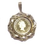 純金 エリザベス/ホースコイン ペンダント K18枠 1/5オンスコイン ガラス風防【中古】【程度A-】【ノーブランド】