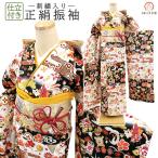 仕立て付き 正絹 振袖単品 刺繍 f-003-t 白 黒 市松模様 うさぎ柄 丹後ちりめん 成人式 卒業式