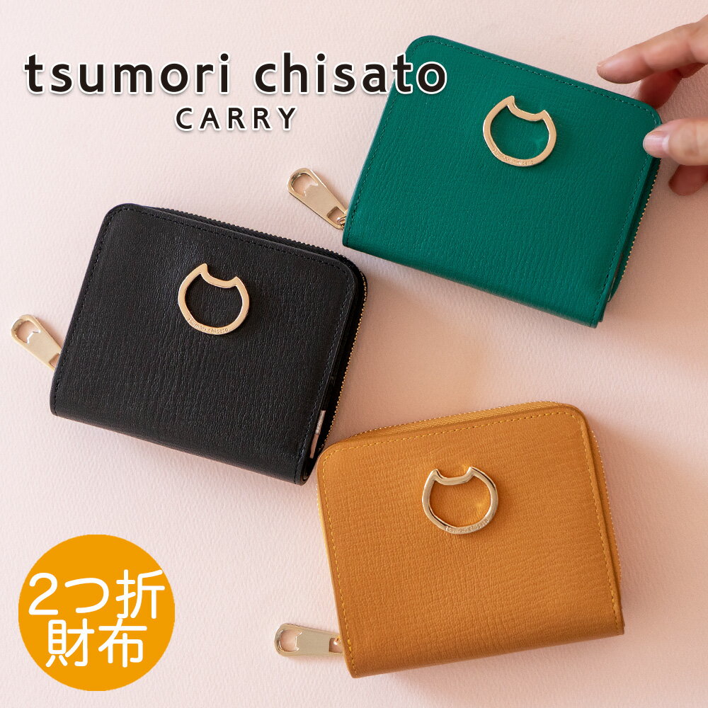 【ノベルティ付&無料ラッピング】 ツモリチサト 二つ折り財布 ネコおこし 2つ折り ラウンドファスナー 猫型リング ゴールド レザー シボ革 ヤギ革 本革 レディース tsumori chisato CARRY 57828 プレゼント ギフト 誕生日 記念日 母の日 金運