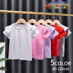 カットソー 半袖 肩フリル ラウンドネック トップス キッズ 子供服 女の子 Tシャツ 無地 単色 シンプル おしゃれ かわいい ガーリー
