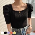 リブ Tシャツ トップス レディース 半袖 パワーショルダー 韓国 おしゃれ かわいい トレンド 夏 白 黒 無地