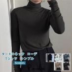 タートルネック Tシャツ レディース 長袖 シンプル 無地 インナー カットソー トップス 春秋冬 重ね着 コーデ 女性用 おしゃれ 期