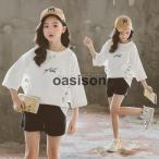 子供服 春夏 おしゃれ 女の子 ジュニア キッズ Tシャツ 半袖 ショートパンツ 韓国子供服 ジュニア 通学 通園 カジュアル 120-170