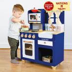 木製おもちゃ 知育玩具 デラックスキッチン ネイビー オーブン おたま 泡立て器 ソルト&ペッパー かわいい お料理 おままごと ごっこ遊び カラフル プレゼン…