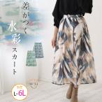 大きいサイズ レディース スカート 気分上がる おでかけ 水彩柄 スカート ボトムス フレアスカート LL 3L 4L 5L 6L 春 春物 春服