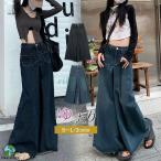 ワイドパンツ レディース ロング パンツ デニムパンツ サルエルパンツ 春夏秋 ズボン ストレートパンツ 体型カバー リラックス