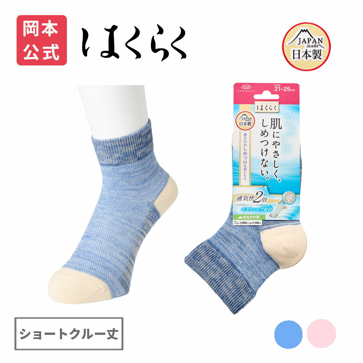 期間限定10%OFF 【靴下の岡本公式】はくらく しめつけない レディース ショートクルー丈 のびーる 引き揃え お出かけ用(涼感)