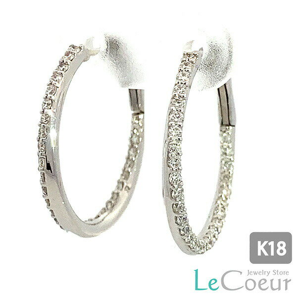 人気 フープピアス 18kホワイトゴールド ダイヤモンド ピアス 0.5カラット 両耳 1ペア レディース 女性 お出かけ イベント おしゃれ 豪華 プレゼント ご褒美 ギフト お祝い ぴあす ピヤス K18WG 白 バネ式 バネキャッチ 自分へのご褒美