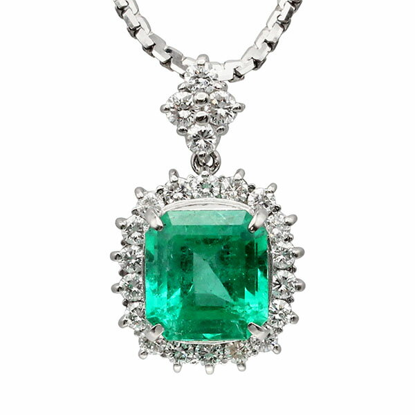 プラチナ エメラルド ダイヤモンド ネックレス 44cm E5.83ct D0.43ct/1.00ct Pt900/850 17.8g 宝石 ジュエリー アクセサリー 女性 レディース ファッション おしゃれ 記念 誕生石 5月 誕生日 バースデー プレゼント 華やか お出かけ パーティ