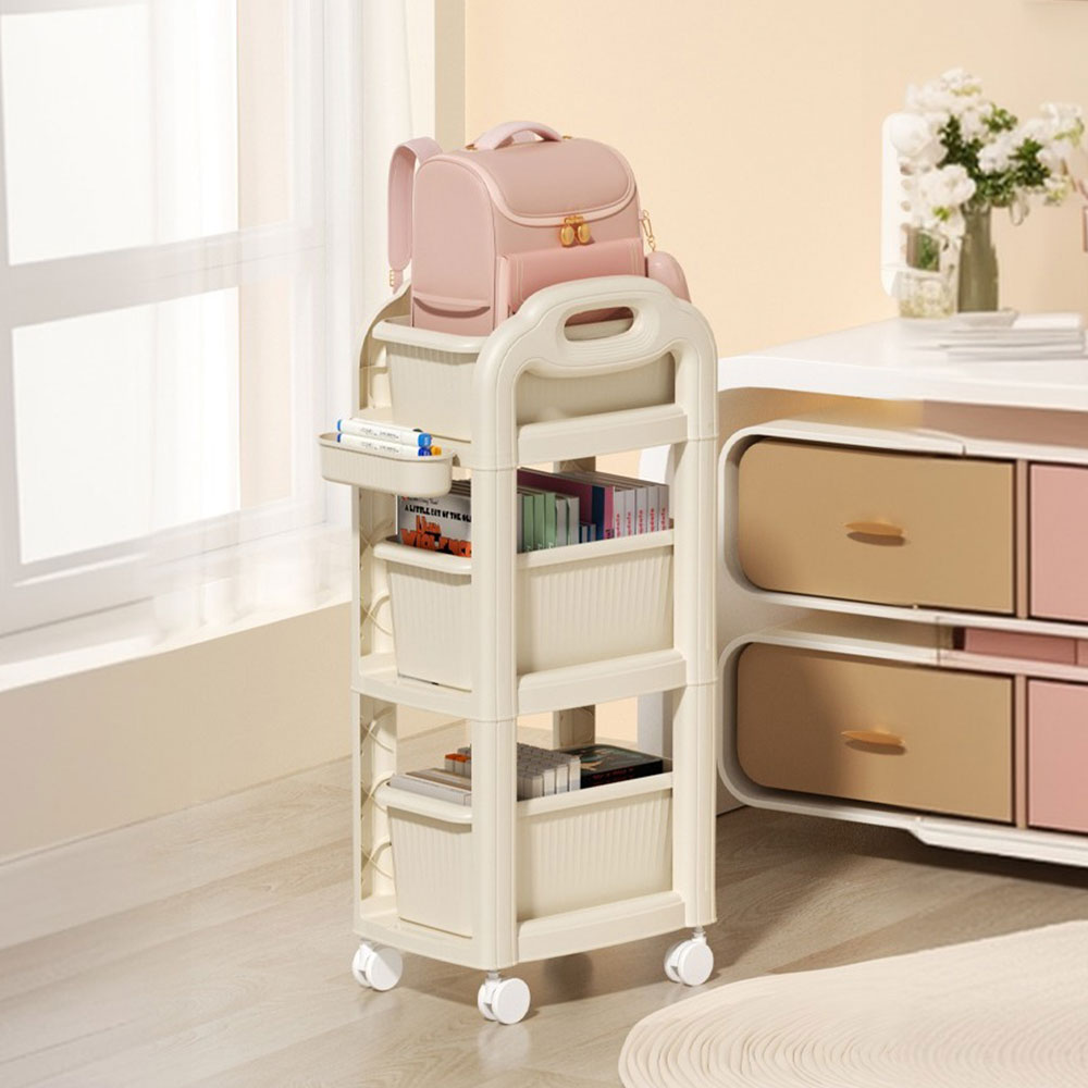 【50枚限定!5%OFFクーポン配布中!★11/30 23:59終了】収納カート ベビー用品収納ラック 4段 キャスター付き オムツ収納 おもちゃ収納 ベビーワゴン フック付き 引き出し付き バスケット付き 取っ手 小物収納 キッチンワゴン 移動式 おしゃれ 小物 食品 収納家庭用 skreppa