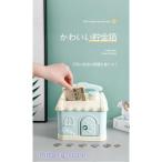貯金箱 おしゃれ かわいい 子供 硬貨 コイン お札 紙幣 鍵付き 家型 可愛い 飾り付き 手提げ金庫 おもちゃ 大容量 小銭投入ボックス お金 お年玉 イベント お年