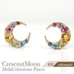ピアス 三日月 お守り アミュレット マルチストーン イエロー ゴールド K10YG