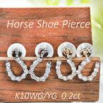 K10 YG WG 馬蹄モチーフ ダイヤモンド ピアス 0.20ct 送料無料 ダイヤ ホースシューピアス 馬蹄 10金 10k 1粒 ゴールド お守り 一粒 ホース プレゼント EmP0077
