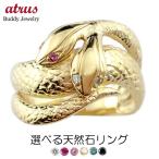 18金 リング レディース 蛇 双頭 お守り 選べる 目 宝石 ゴールド 18k スネーク へび ヘビ 婚約指輪 イエローゴールドk18 SALE