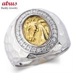 プラチナ 24金 印台 リング 純金 馬 ホース ダイヤモンド 0.24ct メンズ 幅広 太め pt900 ゴールド 24k コンビ 指輪 金 お守り 送料無料 セール SALE