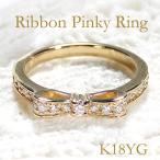 18金 リボン リング ダイヤモンド 0.2ct レディース お守り 指輪 ゴールド 18K 金 ピンキーリング 婚約指輪 シンプル おしゃれ 人気 送料無料 セール sale