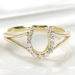 18金 リング 馬蹄 レディース ダイヤモンド 0.05ct ゴールド 18k お守り 蹄鉄 ホースシュー ピンキーリング 婚約指輪 おしゃれ 人気 送料無料 セール SALE