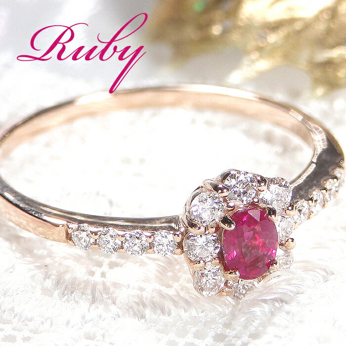 K18PG/YG ルビー&ダイヤモンド リング【送料無料】代引手数料無料 品質保証書ゴールド オーバル 7月 おすすめ ジュエリー 指輪 可愛い リング 人気 お守り おしゃれ 新作 プレゼント ラッピング無料 クリスマスプレゼント