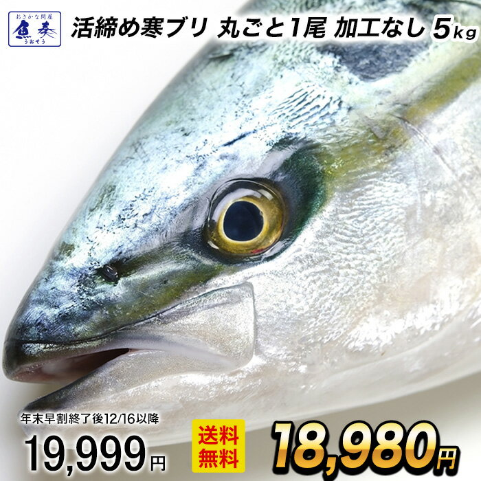【早割★12/16 10時まで!】【加工無し まるごと 1尾 約5kg】 ぶり ブリ 鰤 寒ブリ 鹿児島 大分産 お刺身用 嫁ぶり チルド 【注意】北海道、沖縄は追加送料を997円加算し、ご請求いたします。 送料無料 お歳暮 2025 ギフト 御歳暮 おせいぼ