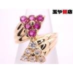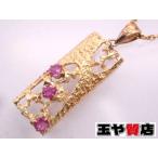 ルビー3P デザイン ペンダント ネックレス K18YG イエローゴールド