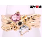 マルチストーン ハートデザインリング 16号強 K18YG イエローゴールド