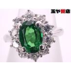 グリーングロッシュラーガーネット1.136ct ダイヤ0.54ct デザインリング9号 pt900 プラチナ 鑑別書付
